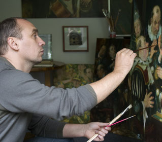 „...Der Künstler liebt die Darstellung der Kontraste, die er kunstvoll und detailliert herausarbeitet, und die für ihn Gleichnisse des Lebens sind. Einige der großen Kompositionen, wie „Straßenmusiker", „Der nackte König" und „Weißer Rabe" sind eindeutig als Allegorien auf das Leben und auf die Gesellschaft zu verstehen. Die Hinwendung zur psychologischen Vertiefung und zur Schilderung des Individuellen, des einzelnen Menschen in all seiner Komik oder Tragik oder merkwürdigen Eigenart erinnert manchmal an Gestalten aus der russischen Literatur, etwa bei Gogol oder Dostojewski..."